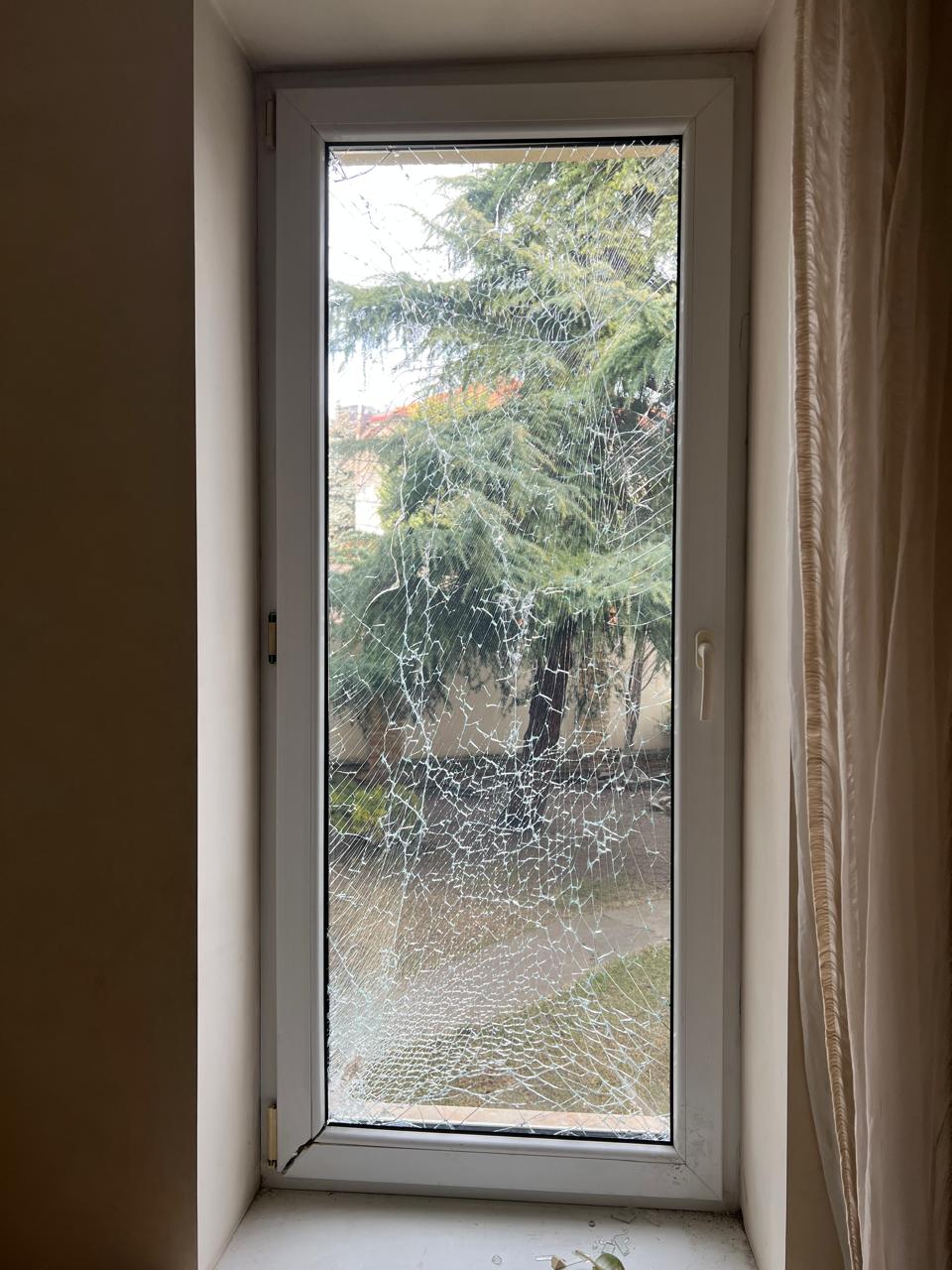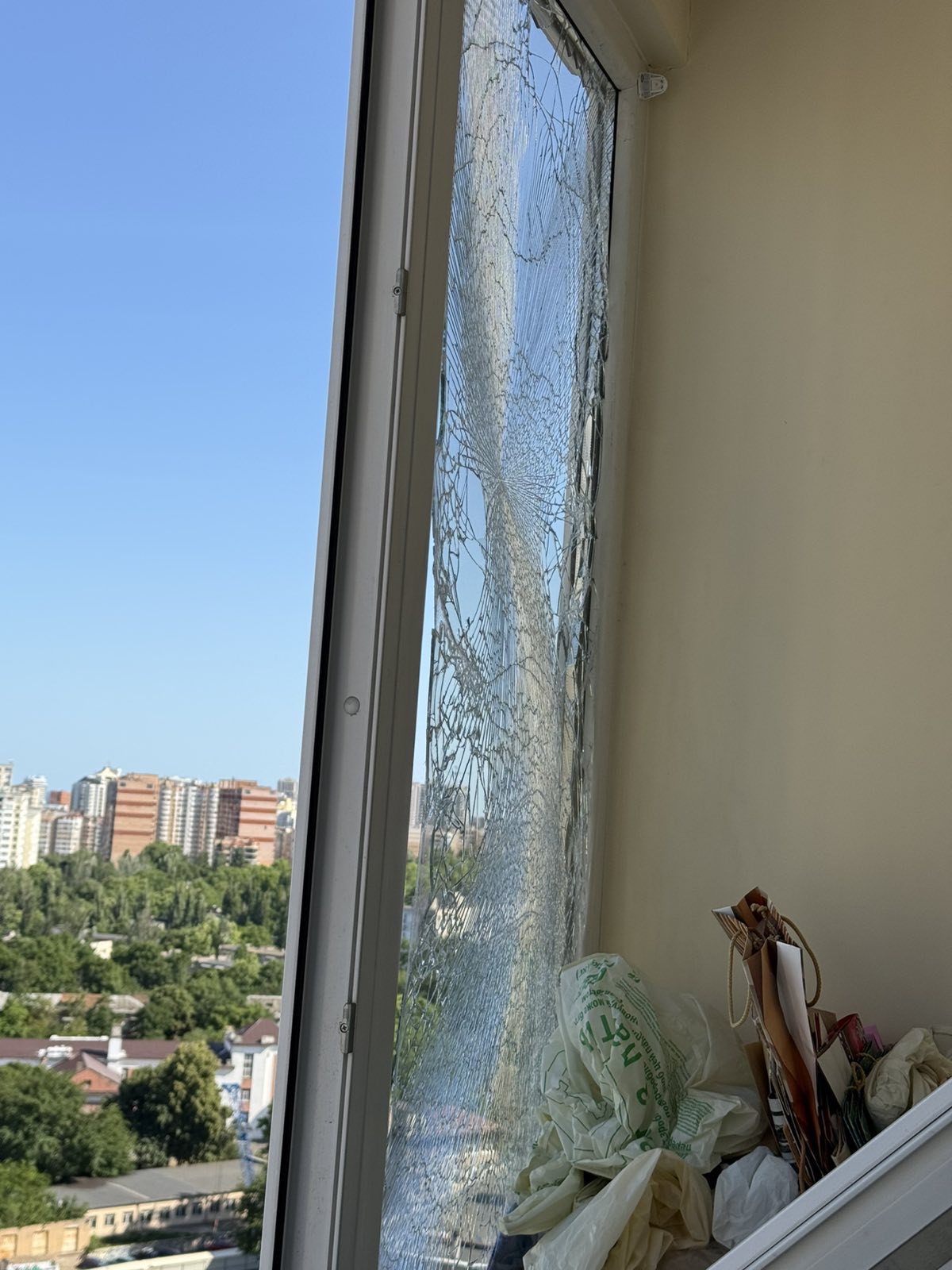 На фото ви бачите реальні приклади того, як спрацювала захисна плівка під час вибухів. Ці знімки нам надіслали клієнти, для яких ми клеїли бронеплівку на вікна. Плівка втримала скло та не дозволила йому розлетітися по квартирі. Звісно, це не скасовує необхідності перебування в укритті, але забезпечує додатковий рівень захисту
